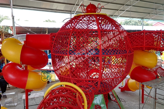 大型的造型攀爬網龍,采用全手工編織網繩打造,以章魚形象為主體,結合攀爬、翻越、滑梯等功能,不僅造....