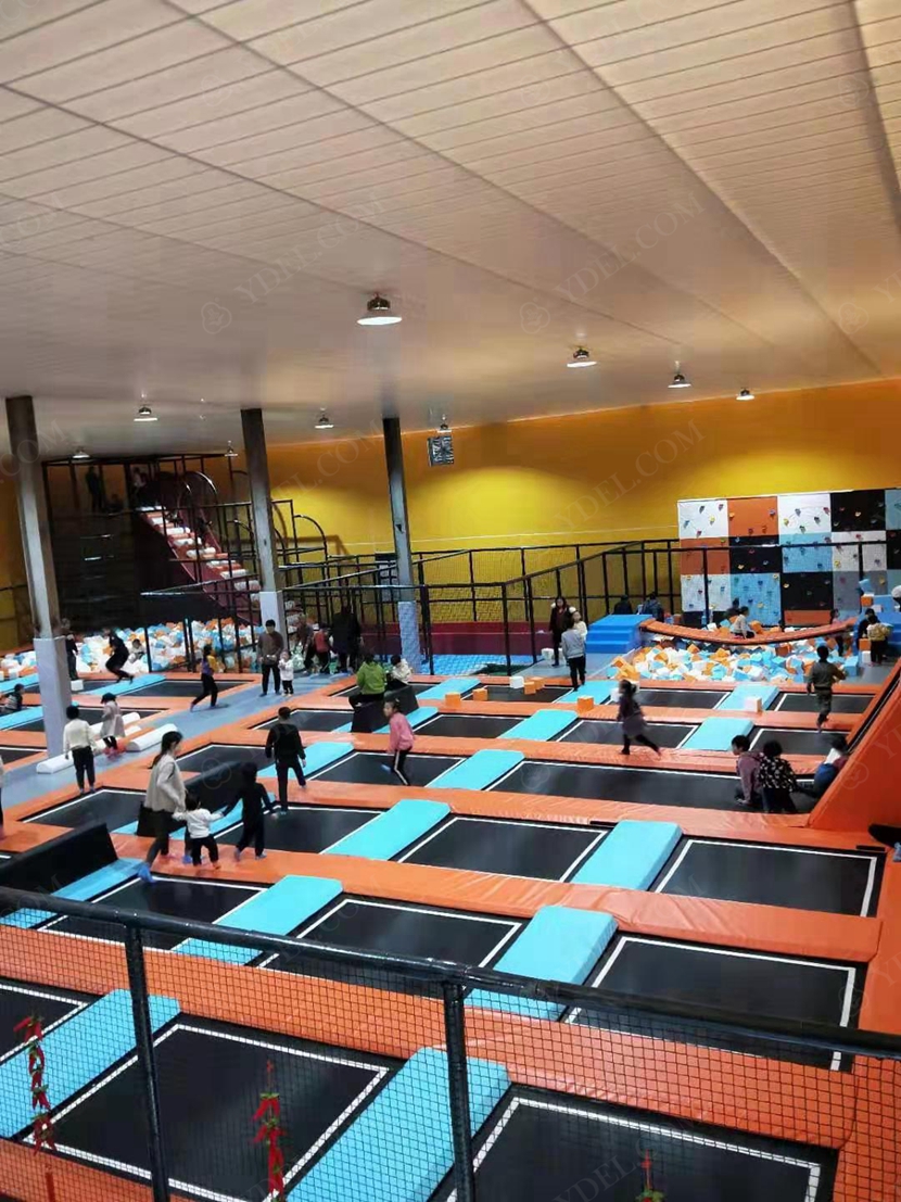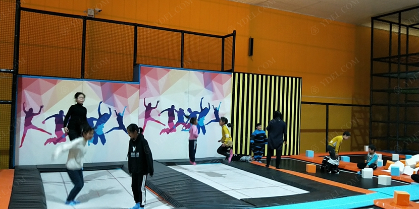 場(chǎng)內(nèi)設(shè)有近800㎡的綜合性蹦床區(qū),包括專業(yè)蹦床區(qū)、競(jìng)技躲避球區(qū)、兒童躲避球區(qū)、跑酷區(qū)、斜蹦面區(qū)、自由彈跳區(qū)、彈跳籃球區(qū)、海綿池區(qū)