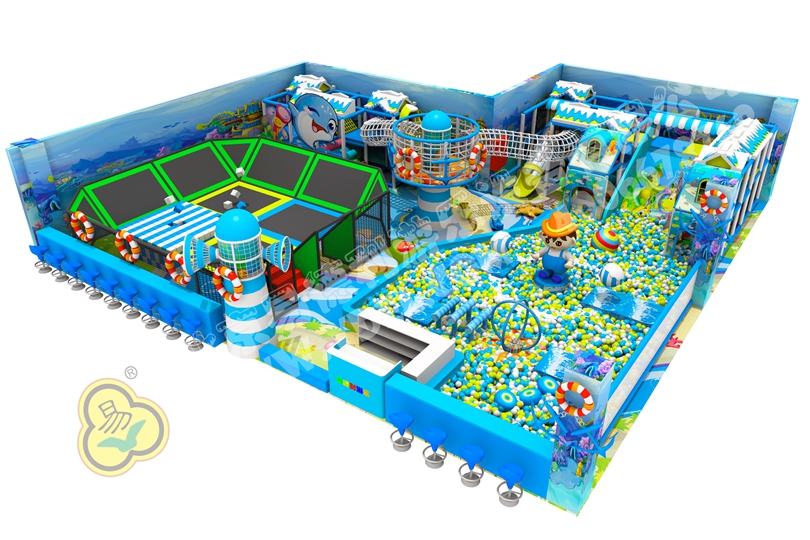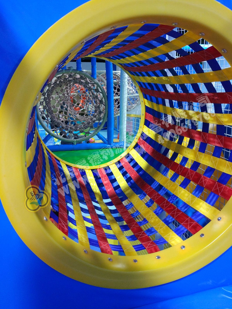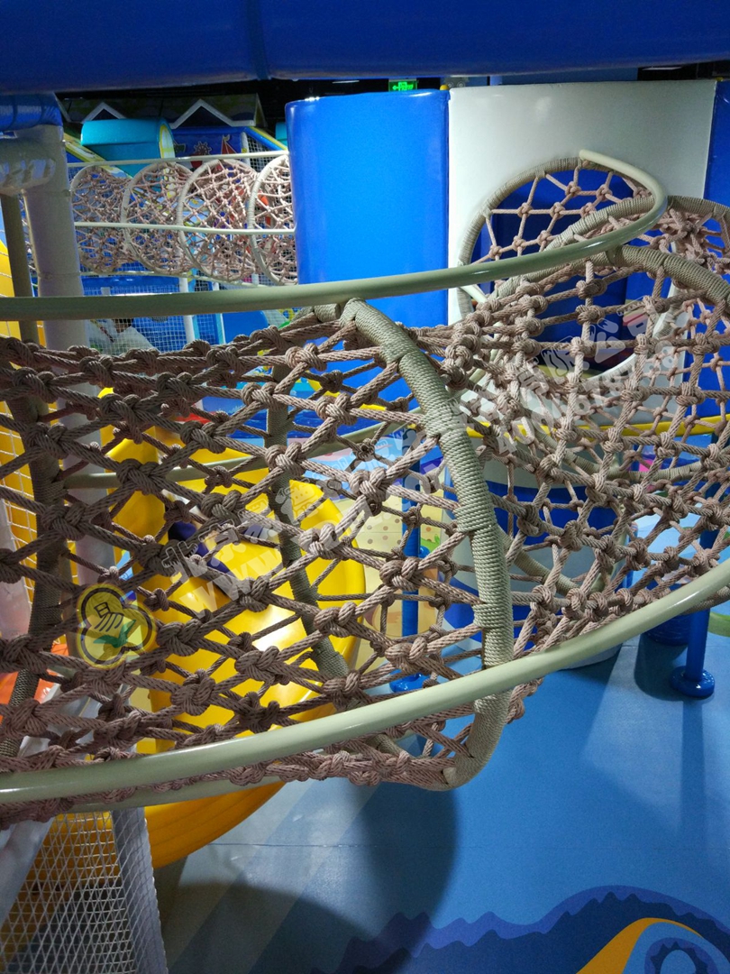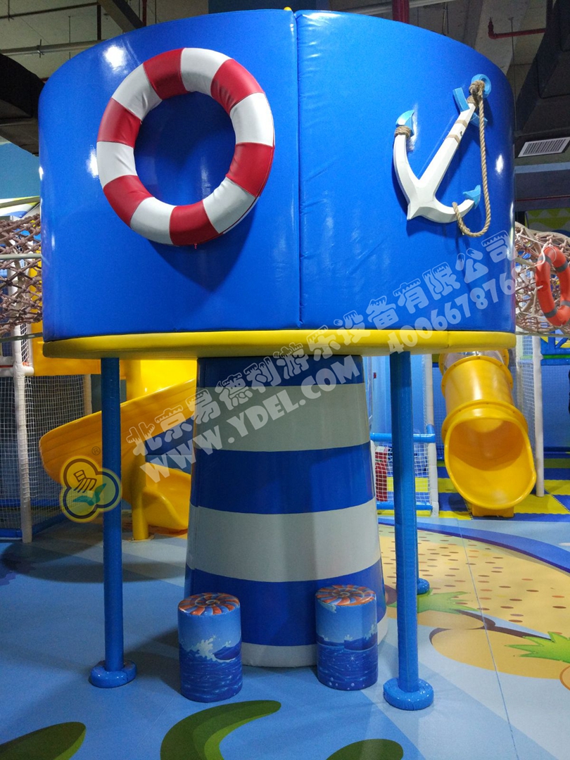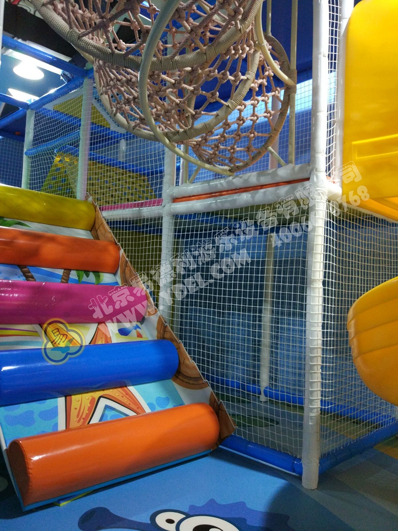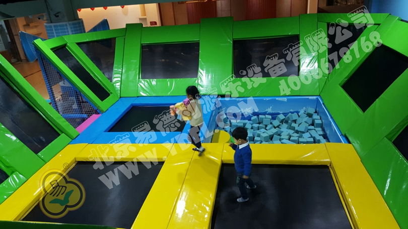 正面蹦,側(cè)面蹦,這就是超級(jí)蹦床的無(wú)限可能,一言不合就跳入中間的海綿塊池體中暢游。框架爬上燈塔瞭望臺(tái),又順著網(wǎng)繩爬到球池上方,中心投影大滑梯,生動(dòng)互動(dòng)。