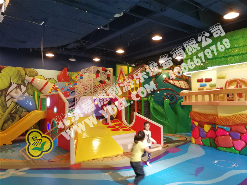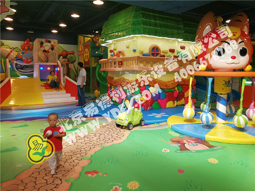 通州萬達寶貝王淘氣堡高端樹屋造型pu,色彩鮮艷亮麗,形象逼真,另類全軟包式滑梯,從下面鉆進去進入上方網繩,可以從主滑道下去也能側邊滑道溜下,還有繩網上下通道,主題形象突出。