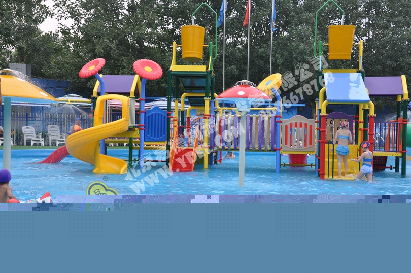 張著大嘴的青蛙滑梯,造型奇特的蘋果屋,各種水槍、蹺蹺板,小水寨不斷輸送著一桶桶水,一潑而下,酣暢淋漓。