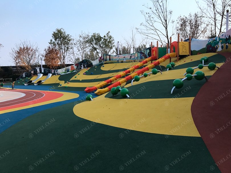 新穎的火車造型滑梯富含多游樂功能,微地形攀爬設施,創意造型滑梯等