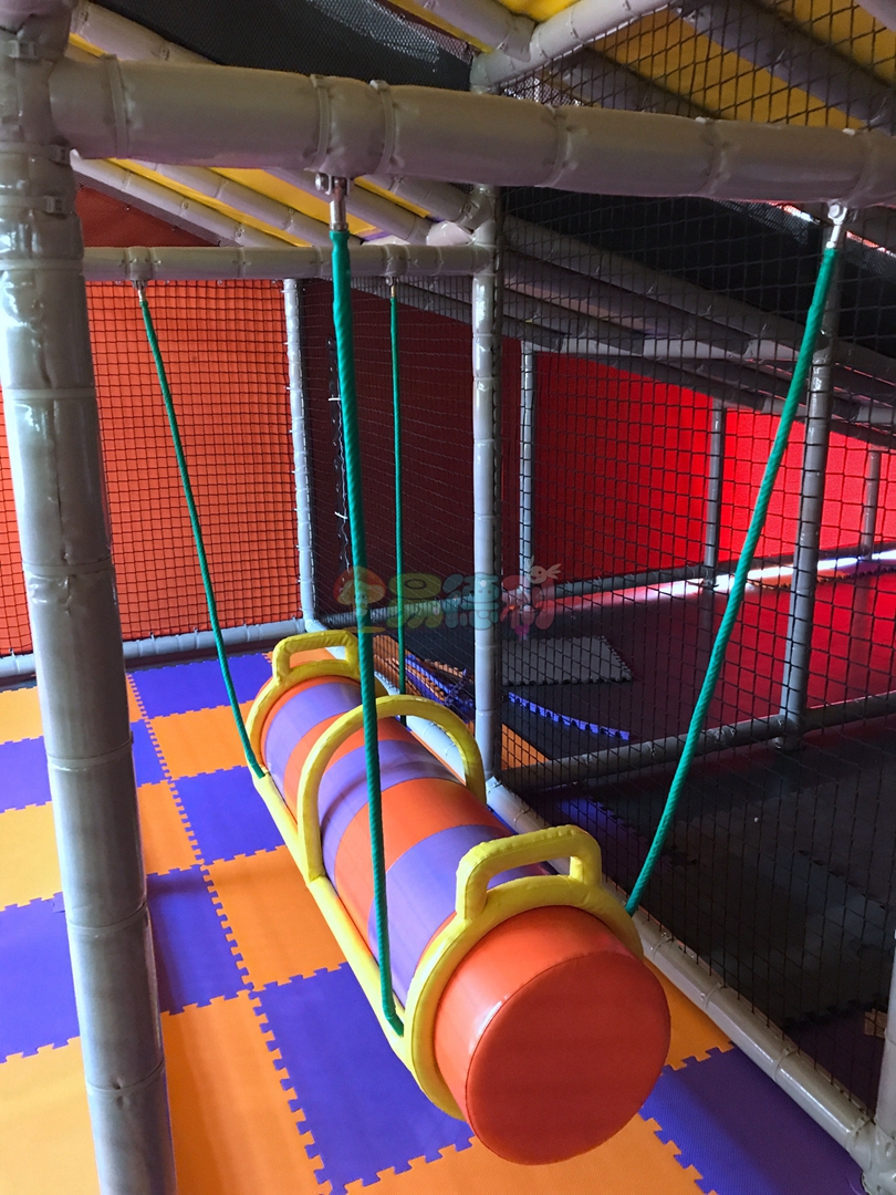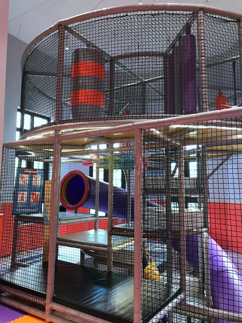 平臺全部是鏤空的,并且富有彈性,上下層通透,有一種高空探險的感覺,淘氣堡內部阻礙重重,蕩橋、梅花樁、星型錘、彩虹梯、滑草等游樂項目應有盡有,讓孩子們樂此不疲!