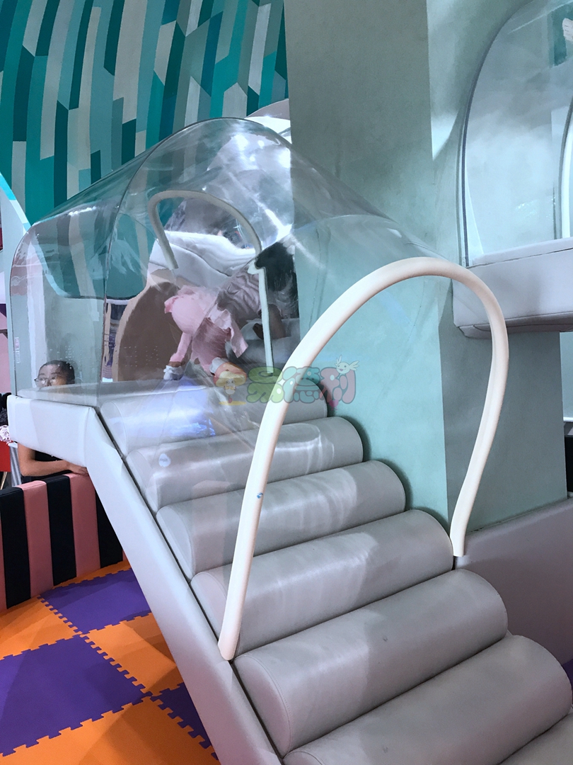 從模擬小鎮經過一條長長的時空走廊就到了大童區了,這里是孩子們的天堂,絕不止是布置的像天堂!這里有各種各樣的滑梯,攀爬梯,手工作坊占滿了整層樓,像一個巨大的迷宮。家長們也不需閑著,在這里,和你的寶貝做一件屬于她自己紀念品吧。當然最矚目的是一條s形的滑梯,可以直接從二樓滑到一樓的餐廳區。