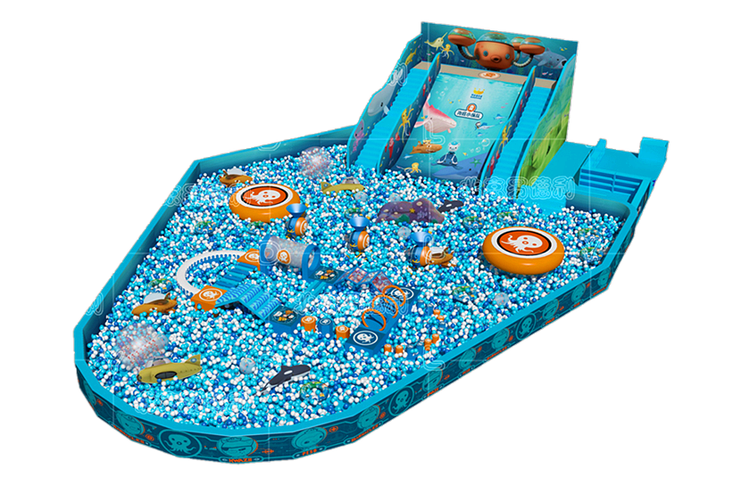 易德利淘氣堡608系列,海底小縱隊IP搭配,完美詮釋海洋場景,大滑梯加闖關,玩嗨了。